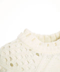 Questo affascinante maglione in maglia di Liu Jo White presenta un'accattivante combinazione di motivo a trecce e giocose applicazioni a pompon. Il design è completato da trafori che conferiscono alle maniche e alla parte superiore un tocco delicato. Il maglione è caratterizzato da scollo rotondo a costine, polsini a costine e orlo a costine. Un capo ideale per look eleganti e accoglienti.