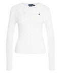 Questo lussuoso maglione Polo Ralph Lauren è realizzato in puro cotone e presenta un classico motivo a trecce. Ha uno scollo rotondo confortevole e polsini e orlo a costine. L'iconico ricamo del logo sul petto completa elegantemente il design. Un capo intramontabile per outfit versatili.