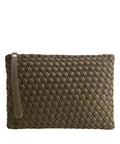 L'elegante clutch colpisce per il suo design finemente intrecciato, che conferisce una texture lussuosa e un aspetto senza tempo. La sua silhouette compatta e rettangolare la rende la compagna ideale per le occasioni serali. Un pratico cinturino da polso garantisce comfort nel trasporto, mentre la sicura chiusura con zip protegge i vostri oggetti essenziali.