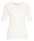 Questa T-shirt a costine 'Liv' di Skall, dalla vestibilità aderente, si presenta come un capo essenziale e intramontabile. Realizzata in puro cotone, offre un comfort elevato e una texture accattivante. Lo scollo rotondo classico è impreziosito da una corta abbottonatura, che aggiunge un tocco discreto al design. Questo capo versatile è ideale per look quotidiani di stile.