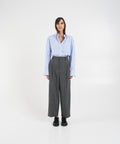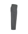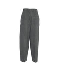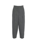Questi moderni pantaloni plissettati presentano un elegante motivo gessato e una vita alta. Il taglio rilassato e le pieghe conferiscono loro una silhouette contemporanea. Ideali per look casual eleganti e confortevoli.