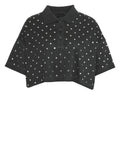 Il modello 'Erve' di Pinko colpisce per il suo design moderno e corto e per la silhouette decisa. Il classico colletto a polo con una breve abbottonatura conferisce alla t-shirt un tocco sportivo ed elegante. La decorazione all-over con applicazioni scintillanti aggiunge un accento lussuoso, mentre il taglio ampio e la vestibilità larga garantiscono il massimo comfort quotidiano.