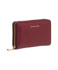 Questo elegante portafoglio presenta un raffinato look coccodrillo e una lucida finitura a vernice. La cerniera a giro completo garantisce una chiusura sicura, mentre il dettaglio logo color oro sul fronte aggiunge un tocco lussuoso. All'interno offre pratici scomparti per carte e una tasca portamonete con cerniera per un'organizzazione ottimale. Un accessorio compatto ed elegante per l'uso quotidiano.