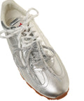 Le sneakers 'DC-642' di Dsquared2 coniugano un design sportivo a una lussuosa artigianalità. Realizzato in Italia in pregiata pelle, questo modello colpisce per la sua silhouette decisa e la finitura di alta qualità. Un dettaglio in contrasto sul tallone e la distintiva suola profilata con gommini completano il look esclusivo.