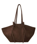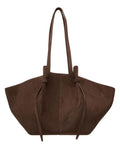 La shopper 'Large Mochi' di Yuzefi, realizzata in pelle scamosciata di alta qualità, si distingue per il design morbido e arricciato con manici elegantemente annodati. Capiente e pratica, è perfetta per tutti gli essenziali, mentre il discreto logo sul fronte aggiunge un tocco di lusso. Made in Spain, unisce artigianalità e stile moderno.