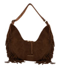 Borsa a spalla scamosciata con frange