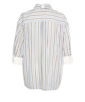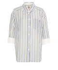 Questa elegante camicia Semicouture si presenta con una vestibilità oversize rilassata ed è realizzata in una raffinata miscela di cotone e seta. È caratterizzata da un classico motivo a righe, un colletto a camicia e un'abbottonatura completa. Pratiche maniche a tre quarti con polsini arrotolati e una tasca applicata sul petto completano il design. Un orlo arrotondato conferisce al capo un tocco moderno.