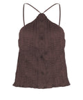 Questo elegante top di Staud affascina con il suo design sofisticato. Il taglio all'americana e le delicate spalline incrociate sulla schiena gli conferiscono un tocco speciale. La texture discreta del materiale e la caduta fluida assicurano un'estetica lussuosa.