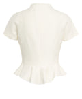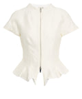 L'esquisito top 'Maelle' di Staud incarna l'eleganza femminile. Realizzato in un lussuoso misto lana, presenta una silhouette aderente con un grazioso orlo a balze. Una cerniera frontale a tutta lunghezza e un elegante colletto alla coreana completano il design con stile, rendendolo un capo versatile e distintivo.