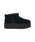 Gli iconici stivali UGG 'Classic Ultra Mini Platform' si presentano in una moderna interpretazione. Realizzati in camoscio di alta qualità e foderati con calda pelliccia di agnello, offrono un comfort ottimale. Una distintiva suola plateau conferisce a questi stivali un look di tendenza e altezza extra. Sono un'aggiunta elegante per la stagione fredda.