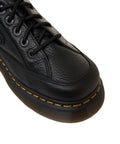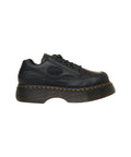 Queste distintive scarpe con plateau Dr. Martens sono realizzate in pelle martellata di alta qualità. Presentano una caratteristica suola rialzata e le tipiche cuciture gialle del marchio. Il modello 'Buzz' vanta una robusta chiusura con lacci e offre una silhouette espressiva per un look individuale.