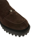 Questi eleganti mocassini Hogan sono realizzati in camoscio di alta qualità e presentano una suola carrarmato distintiva. Il classico design da mocassino penny è modernizzato dalla robusta suola seghettata. Un raffinato dettaglio logo sulla tomaia completa il look elegante. Queste scarpe sono Made in Italy e combinano comfort con un design sofisticato.