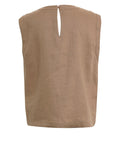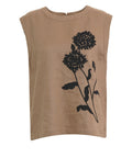 Questo elegante top in puro lino colpisce per la sua leggerezza estiva e la finitura di alta qualità. Un audace accento floreale sul davanti aggiunge un tocco femminile al design minimalista. Il classico scollo rotondo e la silhouette senza maniche assicurano un'estetica senza tempo. Una sottile chiusura sul retro completa armoniosamente il modello.