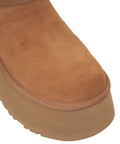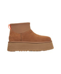 Questi stivali moderni 'Classic Mini Dipper' presentano una tomaia in morbida pelle scamosciata e un gambale elastico per un comfort ottimale. Il loro design distintivo è completato da una suola a plateau alta con battistrada, che aggiunge altezza e garantisce una postura stabile. Un passante sul tallone sottolinea il look contemporaneo di queste scarpe.