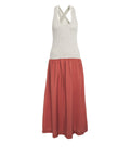 Das Midikleid 'Macao' besticht durch sein raffiniertes Design mit einem schmal geschnittenen Oberteil und einem weit schwingenden Rockteil. Hergestellt in Italien, vereint dieses Modell sportliche Elemente wie den Racerback-Ausschnitt mit eleganter Weiblichkeit. Gereihte Falten am Rock sorgen für ein fließendes Volumen und eine moderne Silhouette.