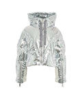 Diese luxuriöse Khrisjoy Pufferjacke präsentiert sich in einem auffälligen Metallic-Look und bietet einen modernen, cropped Schnitt. Das gesteppte Design sorgt für optimale Wärme und einen voluminösen Look. Ausgestattet mit einem hohen Kragen und praktischen Reißverschlussdetails an den Ärmeln vereint sie Stil und Funktionalität. Hergestellt in Italien, ist dieses Modell ein Statement-Piece für die kalte Jahreszeit.