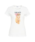Dieses T-Shirt von Liu Jo Denim zeichnet sich durch seinen charmanten Aufdruck aus, der das Design auf einzigartige Weise belebt. Ein verspieltes Katzenmotiv mit Brille und mehreren Perlenketten ziert prominent die Vorderseite. Gefertigt aus weicher, hochwertiger Baumwolle, bietet es angenehmen Tragekomfort für den Alltag.