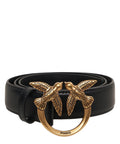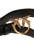 Dieser elegante Gürtel ist aus reinem Leder gefertigt und überzeugt mit einem exklusiven Design. Das charakteristische Accessoire verfügt über eine auffällige Schnalle mit den ikonischen Liebesschwalben von Pinko. Ein dezenter Logoschriftzug auf der Schnalle unterstreicht die luxuriöse Herkunft. Ideal für stilbewusste Outfits.