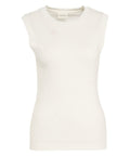 Dieses elegante Top aus einer hochwertigen Baumwollmischung ist ein vielseitiges Basic für jede Garderobe. Es besticht durch seine figurbetonte Silhouette und den klassischen Rundhalsausschnitt. Die ärmellose Gestaltung und der gerippte Saum bieten sowohl Komfort als auch zeitlose Eleganz für den Alltag.