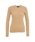 Dieser klassische Pullover von Polo Ralph Lauren ist ein zeitloses Kleidungsstück für Damen. Er präsentiert sich mit einem markanten Zopfstrickmuster, das für eine ansprechende Textur sorgt. Der Rundhalsausschnitt und die langen Ärmel unterstreichen das traditionelle Design. Rippbündchen an Saum und Ärmeln gewährleisten eine bequeme Passform und runden den Look stilvoll ab.