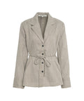 Der Blazer 'Jun' von Second Female präsentiert sich mit einem klassischen Reverskragen und einer durchgehenden Knopfleiste. Ein integrierter Taillengürtel zum Binden betont elegant die Silhouette und sorgt für eine anpassbare Passform. Dieses vielseitige Modell besticht durch sein zeitloses Design, perfekt für anspruchsvolle Looks.
