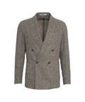 Dieser stilvolle Doppelreiher Blazer von Tagliatore besticht durch sein meliertes Gewebe und klassische Eleganz. Er verfügt über einen breiten Reverskragen und aufgesetzte Taschen, die den lässig-eleganten Look unterstreichen. Die zweireihige Knopfleiste verleiht dem Sakko eine besondere Note. Hergestellt in Italien, repräsentiert er höchste Handwerkskunst.