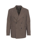 Dieses Sakko aus hochwertiger Wolle präsentiert sich im klassischen Doppelreiher-Stil. Es ist mit feinen Nadelstreifen versehen und verfügt über Pattentaschen für eine elegante Note. Eine passende Hose vervollständigt das Ensemble zu einem souveränen Business-Look. Hergestellt in Italien, steht dieses Modell der Marke The Gigi für exzellente Handwerkskunst.