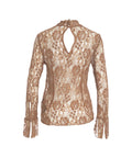 Die Spitzenbluse 'Meena' besticht durch ihr zartes florales Muster und den eleganten Stehkragen. Die langen Ärmel enden in dezent ausgestellten Manschetten, die der Bluse eine raffinierte Note verleihen. Als vielseitiges Oberteil lässt sie sich sowohl elegant als auch lässig kombinieren und ist ein stilvolles Highlight für jede Garderobe.