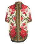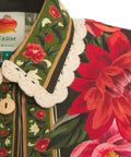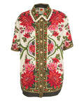 Diese Bluse von Farmrio präsentiert sich mit einem opulenten Blumenmuster. Sie verfügt über kurze Ärmel, einen klassischen Knopfverschluss und einen charmanten Bubikragen. Der abgerundete Saum und die dekorativen Knöpfe unterstreichen das detailverliebte Design, das zu jeder Gelegenheit einen stilvollen Akzent setzt.