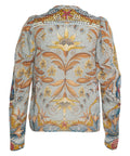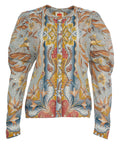 Diese luxuriöse Bluse von Maximilian präsentiert sich mit einem kunstvollen, detaillierten Floral-Print, der von der Natur inspiriert ist. Sie verfügt über einen eleganten Rundhalsausschnitt und markante Puffärmel, die dem Design eine ausdrucksstarke Silhouette verleihen. Ein durchgehender Knopfverschluss sorgt für eine klassische und gleichzeitig anspruchsvolle Passform. Perfekt für stilvolle Auftritte.