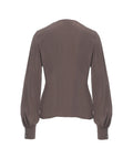 Diese elegante Bluse von Himons zeichnet sich durch aufwendige Rüschendetails an der Vorderseite aus, die dem Design eine feminine Note verleihen. Die weich fließende Qualität sorgt für einen angenehmen Tragekomfort und einen edlen Fall. Lange Ärmel mit gesmokten Manschetten runden das stilvolle Erscheinungsbild ab und bieten vielseitige Kombinationsmöglichkeiten für luxuriöse Ensembles.