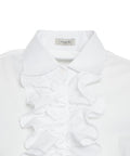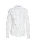 Diese elegante Bluse von Himons zeichnet sich durch ihre stilvollen Rüschendetails an der Knopfleiste aus. Gefertigt aus einem hochwertigen Stoff, bietet sie einen klassischen Hemdkragen und lange Ärmel mit geknöpften Manschetten. Ihr zeitloses Design macht sie zu einem vielseitigen Kleidungsstück für gehobene Anlässe oder den stilvollen Alltagslook.