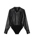 Der 'Boyfriend' Body von Norma Kamali präsentiert sich als stilvolles Statement-Stück mit einer oberen Partie aus hochwertigem Kunstleder. Dieser Body kombiniert den lässigen Charme einer lockeren Bluse mit der bequemen Passform eines Bodys. Er verfügt über einen klassischen Kragen und lange Ärmel mit Manschetten. Ideal für vielseitige Looks, die Eleganz und modernen Komfort vereinen.