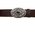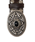 Dieser hochwertige Gürtel von Campomaggi, meisterhaft gefertigt in Italien, besticht durch sein robustes genarbtes Leder. Das Design wird durch eine markante, silberfarbene Metallschnalle mit floralen Ornamenten und einem zentralen Zierstein eindrucksvoll akzentuiert. Dieses luxuriöse Accessoire verleiht jedem Outfit eine besondere Note und unterstreicht den anspruchsvollen Stil.