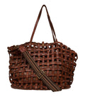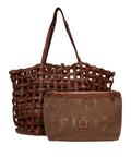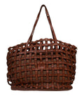 Dieser exklusive Shopper von Campomaggi besticht durch sein kunstvolles Flecht-Design aus hochwertigem Leder. Die Oberfläche ist mit markanten Nietendetails verziert, die dem Modell eine robuste Eleganz verleihen. Im Inneren bietet eine herausnehmbare Tasche aus Baumwollmischung viel Stauraum und hält Ihre Essentials sicher. Dieser luxuriöse Begleiter, Hergestellt in Italien, ist ein Ausdruck meisterhafter Handwerkskunst.