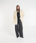 Diese luxuriöse Jacke 'Katalina' von Stand Studio ist aus weichem Kunstfell gefertigt und bietet unvergleichlichen Tragekomfort. Der doppelreihige Knopfverschluss und der breite Kragen verleihen der Jacke eine elegante und voluminöse Silhouette. Ein modisches Statementpiece, das Wärme und Stil in der kalten Jahreszeit garantiert.