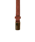 Dieser elegante Gürtel aus feinem Wildleder verleiht jedem Outfit eine luxuriöse Note. Er zeichnet sich durch seinen schmalen Schnitt und eine dezente, goldfarbene Schnalle mit eingeprägtem Logodetail aus. Ein vielseitiges Accessoire, das sowohl zu Kleidern als auch zu Hosen perfekt passt.
