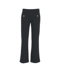 Die Hose 'Faith' von Cambio überzeugt mit einem modernen Design. Sie präsentiert sich mit einem hohen Bund und einem leicht ausgestellten Bein, das eine elegante Silhouette schafft. Zwei aufgesetzte Pattentaschen vorne, verziert mit goldenen Knöpfen, verleihen diesem Modell eine luxuriöse Note. Diese Hose vereint Komfort mit stilvoller Eleganz.
