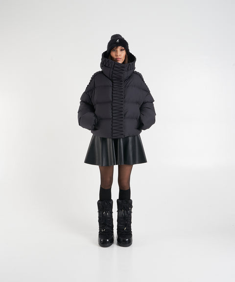 Diese stilvolle Daunenjacke von Christopher Raxxy besticht durch ein einzigartiges Design mit markanten Raffungen am Kragen und entlang der Vorderseite. Das gesteppte Obermaterial sorgt für optimale Wärme und eine moderne Ästhetik. Mit ihrem luxuriösen Puffer Stil ist sie ein exklusives Statement Piece für die kälteren Tage, ideal für einen eleganten und gleichzeitig komfortablen Auftritt.