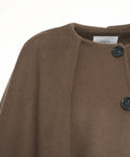 Die elegante Wolljacke 'Selena' präsentiert sich mit einem raffinierten, fließenden Überwurf an den Schultern, der einen modernen Capes-Look verleiht. Gefertigt aus hochwertiger Wolle, bietet dieses Modell eine luxuriöse Haptik und eine ansprechende Silhouette. Sie verfügt über einen klassischen Rundhalsausschnitt und eine durchgehende Knopfleiste. Verstellbare Riegel mit Knopfverschluss an den Ärmelabschlüssen runden das stilvolle Design ab.