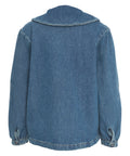 Die Denim-Jacke 'Neve' von Seventy & Mochi besticht durch ihre Oversize-Passform und den eleganten, bestickten Blumenkragen. Hergestellt aus einer nachhaltigen Mischung aus Bio- und Recycling-Baumwolle, bietet sie hohen Tragekomfort und einen zeitgemäßen Casual-Stil. Die durchgehende Knopfleiste und zwei große aufgesetzte Taschen runden das Design ab und machen sie zum idealen Kleidungsstück für einen modernen, lässigen Look.