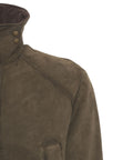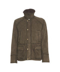 Diese hochwertige Wildleder Jacke 'Balmoral' von The Jackie präsentiert sich im robusten, doch eleganten Stil. Sie verfügt über einen hohen Stehkragen mit Knopfverschluss und eine durchgehende Knopfleiste. Vier aufgesetzte Taschen bieten praktischen Stauraum und unterstreichen den funktionalen Charakter. Ein zeitloser Begleiter für den anspruchsvollen Herrn.