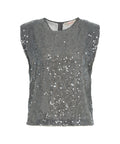 Dieses elegante Top von Jucca besticht durch seine glamouröse Pailletten-Applikation, die für einen funkelnden Auftritt sorgt. Das ärmellose Design mit Rundhalsausschnitt und rückseitigem Reißverschluss bietet eine moderne und bequeme Passform. Ideal für besondere Anlässe, um jedem Outfit einen Hauch von Luxus zu verleihen. Hergestellt in Italien.