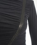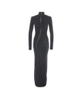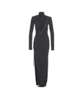 Dieses elegante Maxi-Kleid von Elisabetta Franchi besticht durch seinen modernen Schnitt und die effektvollen Raffungen. Es verfügt über einen hohen Rollkragen und lange Ärmel, die eine schlanke Silhouette betonen. Ein diagonaler Reißverschluss akzentuiert die seitlichen Raffungen und verleiht dem Kleid eine besondere Note. Hergestellt in Italien.