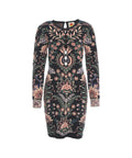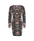 Ein ansprechendes Strickmini-Kleid, das mit seinem kunstvollen, durchgängigen Muster begeistert. Gefertigt aus einem weichen Stricktextil, bietet es hohen Tragekomfort und eine figurnahe Silhouette. Lange Ärmel und ein dezenter Rundhalsausschnitt runden das Design ab, während ein kleiner Schlüssellochausschnitt am Rücken einen raffinierten Akzent setzt. Dieses Kleid ist eine stilvolle Wahl für vielfältige Anlässe.
