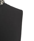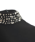 Dieses elegante Minikleid von Liu Jo zeichnet sich durch sein raffiniertes Design aus. Es präsentiert sich ärmellos mit einem hohen Kragen, der reich mit funkelnden Strass-Applikationen verziert ist. Die gerade Silhouette umspielt schmeichelhaft die Figur und macht es zu einer stilvollen Wahl für besondere Anlässe.