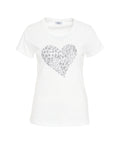 Dieses T-Shirt von Liu Jo Denim präsentiert sich mit einem klassischen Rundhalsausschnitt und kurzen Ärmeln. Ein auffälliges Detail ist die große, herzförmige Applikation auf der Vorderseite. Diese zeigt ein modernes Leo-Muster und den dezent eingearbeiteten Logoschriftzug der Marke, gefertigt aus glänzenden Strasssteinen. Ein vielseitiges Basic mit luxuriösem Akzent.