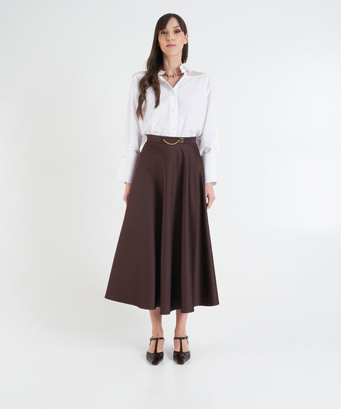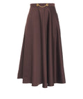 Dieser luxuriöse Rock überzeugt mit seiner eleganten Midi-Länge und einer weit schwingenden Silhouette. Das High-waist-Design wird durch ein raffiniertes goldfarbenes Kettendetail mit Logodetails am Bund akzentuiert, das eine glamouröse Note verleiht. Perfekt für anspruchsvolle Outfits, wurde dieser Rock mit höchster Präzision in Italien gefertigt.