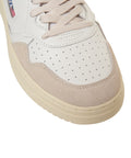 Die 'Medalist Low' Sneakers von Autry zeichnen sich durch ihr hochwertiges Obermaterial aus Glattleder und Wildleder aus. Das Design ist inspiriert vom Vintage-Look der 80er Jahre und überzeugt mit einer perforierten Zehenkappe für Atmungsaktivität. Seitliche Logoapplikationen und eine robuste Gummisohle runden den stilvollen Freizeitschuh ab.