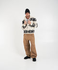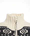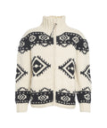 Diese hochwertige Strickjacke von Frantic ist aus weicher Wolle gefertigt und präsentiert sich mit einem markanten, durchgehenden geometrischen Muster. Sie verfügt über einen hohen Stehkragen und einen praktischen Reißverschluss. Gerippte Bündchen an Ärmeln und Saum sorgen für eine bequeme Passform. Ein vielseitiges Kleidungsstück für die kalte Jahreszeit, hergestellt in Ecuador.
